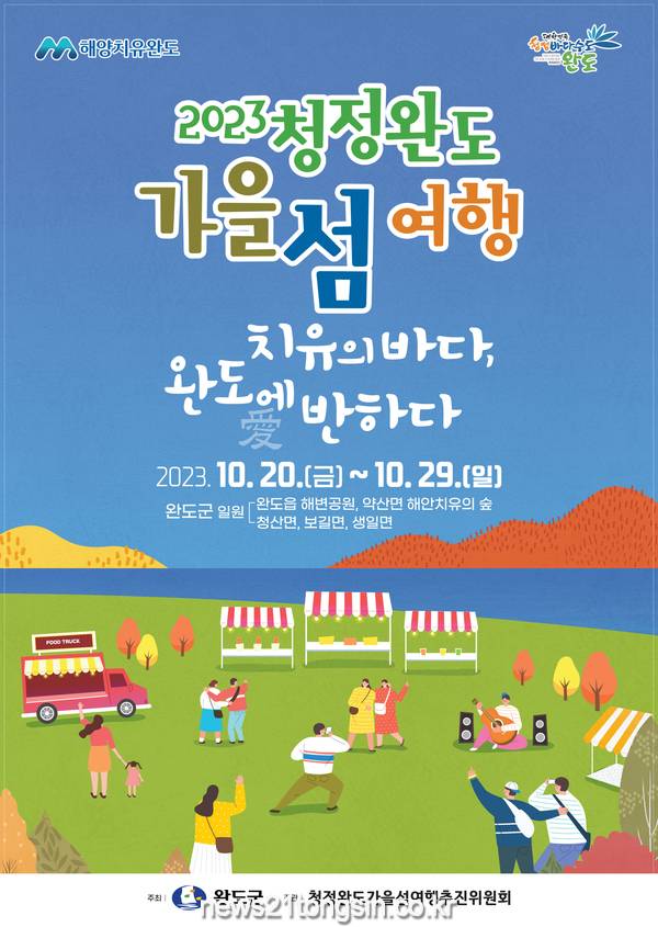 [뉴스21통신 박찬웅 기자] 「2023 청정 완도 가을 섬 여행」이 10월 20일부터 29일까지 청산도, 보길도, 생일도 등 섬 권역과 완도 해변공원, 약산 해안치유의 숲 등에서 열린다.