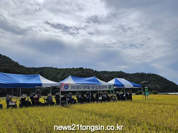 [뉴스21통신 박찬웅 기자] 진도군이 최근 농업기술센터 실증 시험포장에서 식량작물 시범농가, 선진농협 RPC, 브랜드쌀 재배농가 등 관계자 50여 명이 참석해 2023년 식량작물 종합평가회를 개최했다.