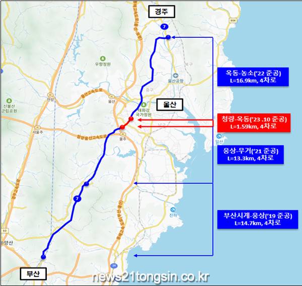(뉴스21통신/우정석기자) = 울산시는 10월 18일(수) 오후 3시 문죽교차로에서 ‘청량~옥동’ 국도사업 개통식이 개최된다고 밝혔다.