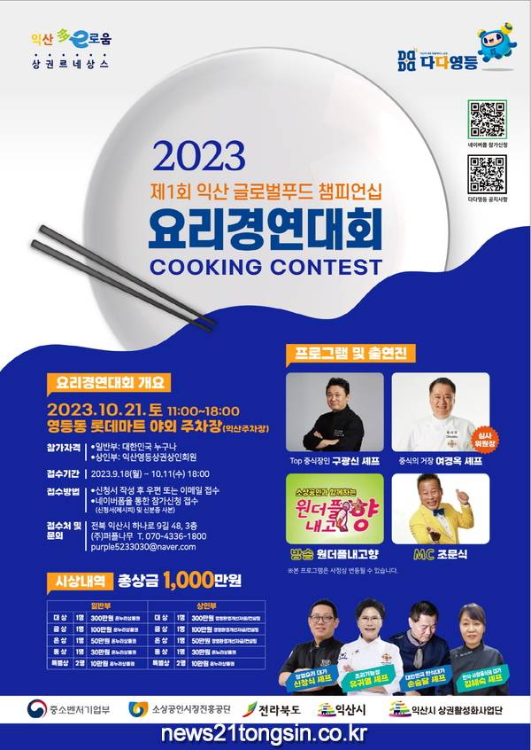익산시 관계자는 “전국에서 요리를 사랑하는 많은 분들이 관심을 갖고 참여해주셔서 수준 높은 요리 행사가 진행될 것으로 예상된다”며 “이번 요리대회를 통해 영등 상권을 널리 알리는 계기가 되길 기대한다”고 말했다.