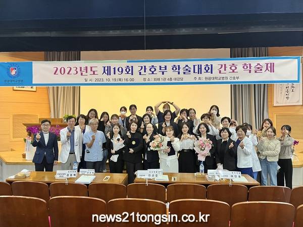 원광대학교병원(병원장 서일영)이 지난 19일 외래 1관 4층 대강당에서 더 UP BEST SAFE Nursing을 향한 간호부의 변함 없는 의지를 담아 총 6편의 임상 연구 논문의 결과를 나누는 ‘제19회 간호 학술제’를 개최하였다.