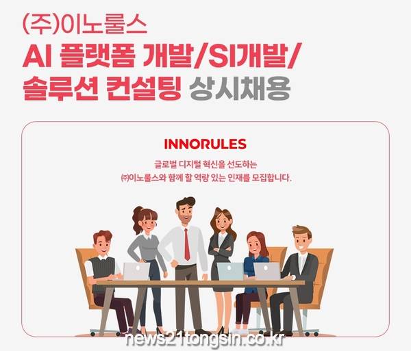 DX 자동화 솔루션 전문 기업 이노룰스(INNORULES)가 서비스 혁신을 위한 상시 채용을 진행한다고 20일 밝혔다.
