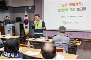 캠페인은 오후 6시30분에 화양동 주민센터에서 광진구청과 광진경찰서 직원, 상가번영회 회원 등 80여 명이 참석한 가운데 광진경찰서의 ‘건대 맛의 거리 안전환경조성 보고회’로 시작됐다.