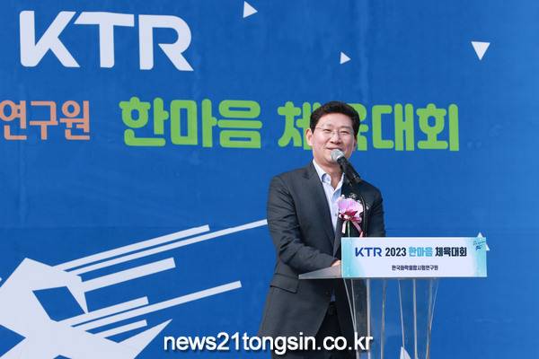 ▲ 사진=용인시이상일 용인특례시장은 20일 처인구 삼가동 용인 미르스타디움 주 경기장에서 열린 한국화학융합시험연구원(KTR) 한마음체육대회를 방문해 축하 인사를 전했다.