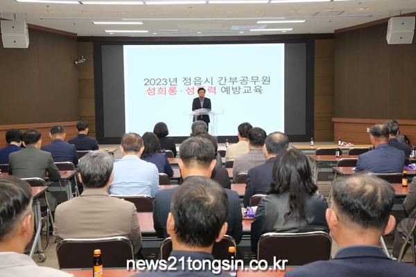 정읍시는 20일 시청 5층 대회의실에서 5급 이상 간부공무원 72명을 대상으로 성희롱·성폭력 예방교육을 실시했다.