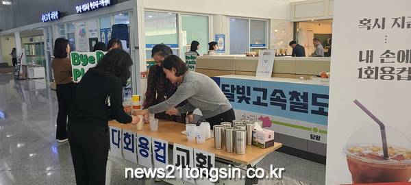 [뉴스21통신/장병기 기자] 광주광역시(시장 강기정)는 11월 ‘1회용품 사용 제한’ 확대 시행을 앞두고 직원과 시민을 대상으로 ‘1회용컵 반입금지 행사(캠페인)’를 펼치고 있다.