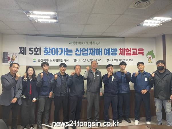 (뉴스21통신/권혁진기자) = 울산 북구 노사민정협의회는 24일 모듈화일반산업단지 내 교육장에서 제조업 노동자 및 사업자를 대상으로 찾아가는 산업재해 예방 체험 교육을 진행했다.