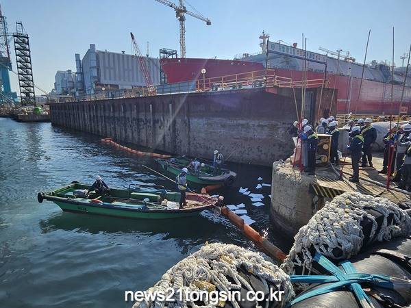 (뉴스21통신/우정석기자) = 울산해양경찰서(서장 정욱한)는 10월 25일 울산 미포만에서 HD현대중공업, 현대미포조선과 해양오염사고 대응역량 강화를 위한 2023년 대형조선소 합동 방제훈련을 실시했다고 밝혔다.