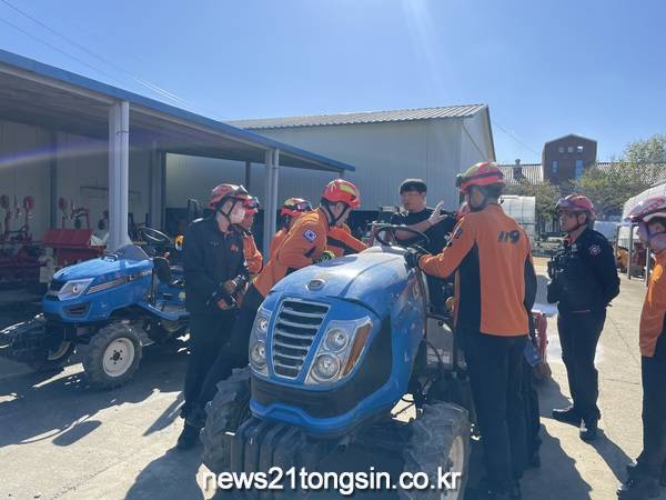 [전북=뉴스21] 오충일 기자= 완주군이 완주소방서 직원들을 대상으로 농기계 안전사용법을 교육했다.