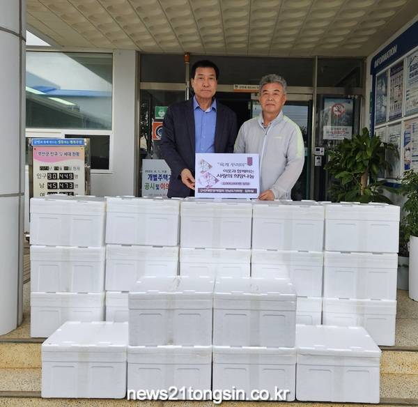 [뉴스21통신 박찬웅 기자] 무안군 망운면에서 육계 농가를 경영하고 있는 (사)대한양계협회 전남도회장 김화실 대표가 지난 25일 200만 원 상당의 조리용 육계 꾸러미 21세트를 지역의 어려운 이웃에게 기탁하여 따뜻한 나눔 기운을 더 했다.