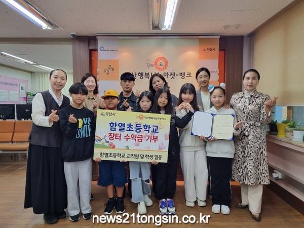 기부한 성금은 함열초등학교 3~4학년에서 선생님과 학생들이 준비한 물건을 모아 진행한‘행복나눔마켓’쿠폰 판매 수익금으로 마련됐다.