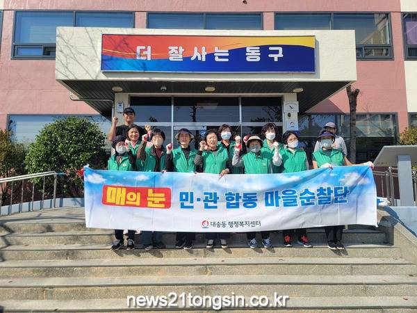 (뉴스21통신/임정훈기자) = 울산 동구 대송동 행정복지센터(동장 오정임)에서는 10월 25일(수) 오전 10시부터 대송농수산물시장 및 상가지역 일원에서 대송동 새마을문고(회장 정정선) 회원들과 함께 매의 눈 민·관 합동 마을 순찰과 승용차요일제 캠페인을 실시했다.