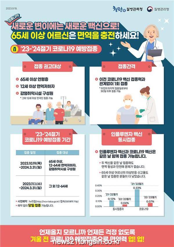 그동안 기초접종(1, 2차)을 하지 않았어도 신규 백신을 접종했다면 추가적인 접종은 필요하지 않다. 이번 코로나19 예방접종 백신은 안전성과 유효성이 확인된 만큼 질병관리청의 권고에 따라 코로나19와 독감(인플루엔자) 백신의 동시 접종이 가능하다.