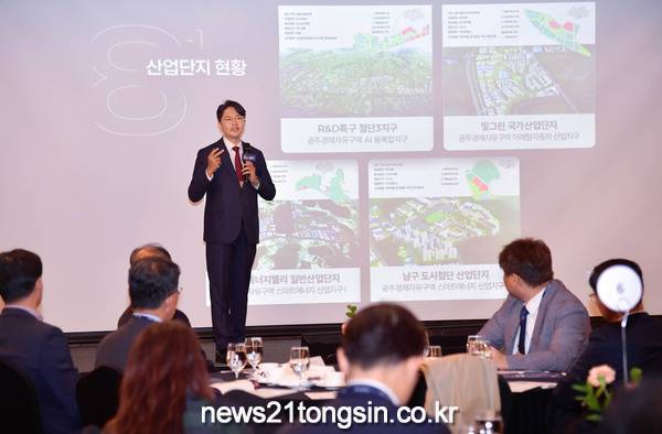 광주광역시(시장 강기정)는 27일 서울 그랜드인터컨티넨탈호텔에서 국내외 100여개 투자자들을 대상으로 광주 투자환경과 신산업 육성 및 지원 정책 등을 소개하는 투자환경설명회를 개최했다.
