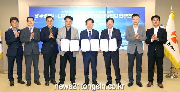 [뉴스21통신/장병기 기자] 광주광역시는 27일 시청 비즈니스룸에서 인공지능을 활용한 CCTV관제센터 관제기술 고도화를 위한 회선사업자인 엘지유플러스(LGU+), 인공지능데이터센터를 운영하는 인공지능산업융합사업단과 ‘안전도시 광주건설 업무협약’을 체결했다.