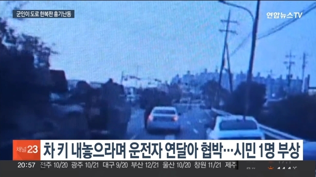 군인이 도로 한복판에서 흉기난동..."차키 내놔"