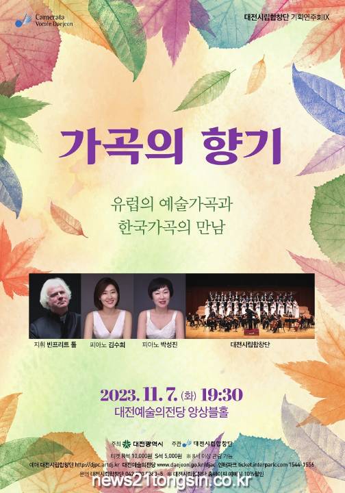 대전시립합창단은 11월 7일 화요일 오후 7시 30분 대전예술의전당 앙상블홀에서 기획연주회Ⅸ <가곡의 향기> 연주회를 개최한다.