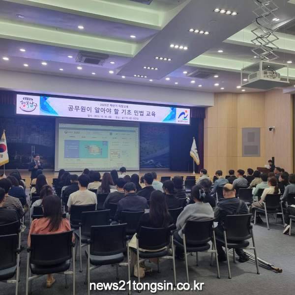 (뉴스21통신/최원영기자)=울산 남구(구청장 서동욱)는 30일 남구청 6층 대강당에서 전 직원을 대상으로‘공무원이 알아야 할 기초 민법 교육’이라는 주제로 직장교육을 실시했다.