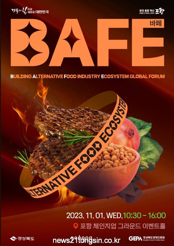 경상북도(도지사 이철우)는 11월 1일(수) 포항 포스코 체인지업그라운드 이벤트홀에서 「대체식품 산업 생태계 구축 글로벌 포럼(BAFE)*」 개최한다고 밝혔다.