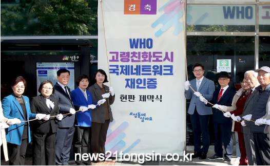 한편 성동구는 지난 10월에 세계보건기구(WHO)로부터 고령친화도시 재인증을 받았다. 2020년 5월 세계보건기구(WHO)에 고령친화도시 3개년 조성계획을 제출하여 최초 인증을 받은 후, 3년간 노인복지 정책의 성과를 인정받은 것이다.