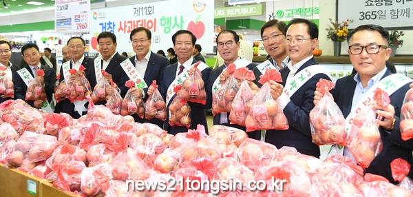 거창군은 지난 3일 국내 최대 규모의 농산물마트인 서울 농협유통 하나로마트 양재점에서 거창군 농협과 함께 ‘제11회 거창 사과데이 기념 거창사과 특판행사’를 열고 서울시민을 대상으로 대대적인 홍보활동을 펼쳤다고 6일 전했다.