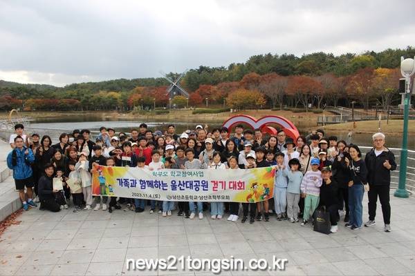 (뉴스21통신/최원영기자)=울산시 남구 남산초등학교(교장 공귀점)는 4일 학부모 학교 참여사업의 하나로 ‘가족과 함께하는 울산대공원 걷기대회’를 열었다.