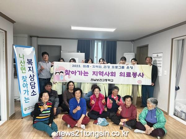 '의료봉사활동‧복지상담소'는 나산면이 주민 보건‧복지 편의 증진을 위해 전남 보건고등학교와 연계해 추진하는 민·관 협력 복지사업이며, 매월 한 번 경로당에 직접 방문하여 주민들에게 맞춤형 복지서비스를 제공받을 수 있도록 안내하고 있다.