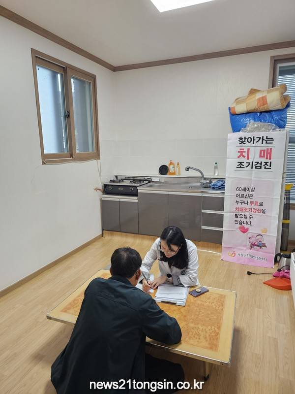 찾아가는 치매조기검진은 치매안심센터 방문이 어려워 검사를 받지 못한 지역 주민을 위해 마을회관과 경로당을 찾아가 무료로 인지선별검사를 시행하는 사업이다.