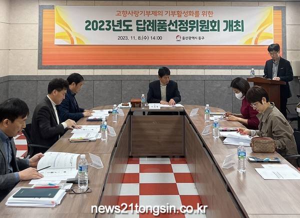 (뉴스21통신/임정훈기자) = 울산시 동구청은 11월 8일 오후 2시 동구청 2층 소회의실에서 고향사랑기부제 답례품선정위원회를 개최했다.
