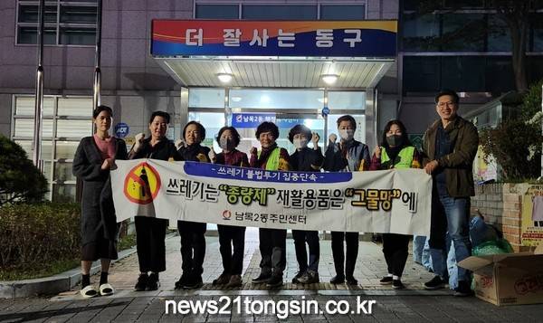(뉴스21통신/임정훈기자) = 울산 동구 남목2동 행정복지센터(동장 김명자)는 지난 11월 7일 오후 7시부터 자연보호협의회(회장 배수명) 회원과 동직원등 10명이 참석한 가운데 쓰레기 불법투기 야간단속을 실시하였다.