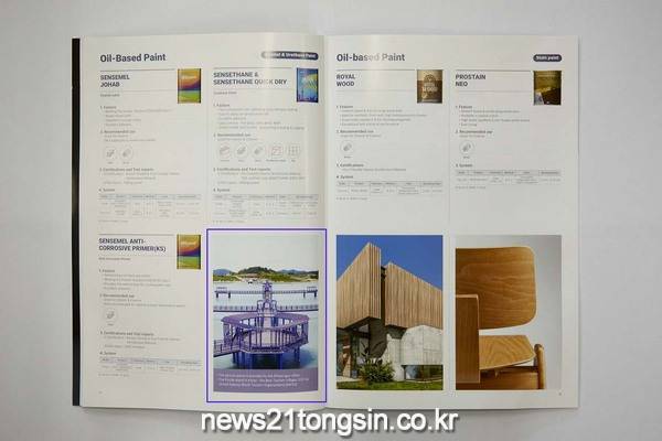 영문으로 제작된 소책자에는 퍼플교 사진과 세계 최우수 관광마을에 자사 페인트가 사용되었다는 내용이 실렸다.