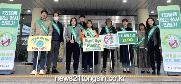 (뉴스21통신/임정훈기자) = 울산시 동구청은 11월 10일오늘 1회용품 없는 청사 만들기의 일환으로 ‘1회용품 사용 제로 캠페인’을 시행하였다.