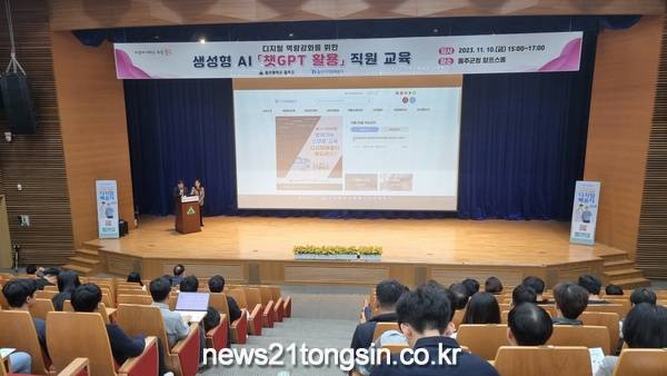 (뉴스21통신/우정석기자) = 울산시 울주군이 10일 군청 알프스홀에서 울주군 직원 300여명을 대상으로 생성형 AI ‘챗GPT 활용’ 직원 교육을 실시했다.