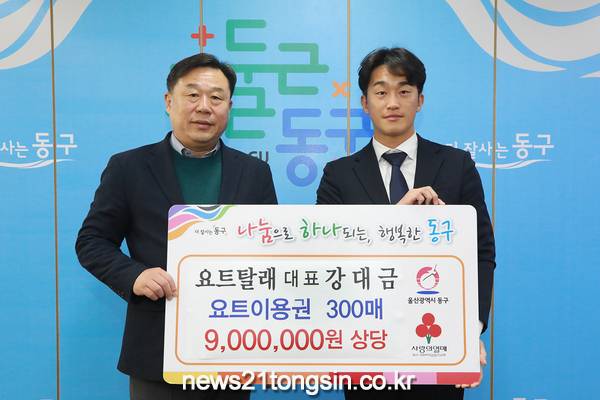 이번에 기탁한 요트이용권은 총 300장으로, 동구다문화가족지원센터와 동구지역아동센터 연합회, 동구종합사회복지관 등에 전달될 예정이다.