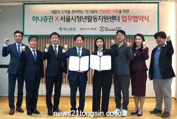 서울특별시청년활동지원센터(센터장 신소미)와 하나증권(대표이사 강성묵)은 11월 10일(금) ‘2023 하나증권과 함께하는 서울청년 건강검진 지원 사업’을 위한 업무협약을 진행했다.