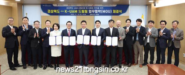 경북도는 15일 경북도청에서 한국공항공사, 한화시스템, SK텔레콤, 티맵모빌리티로 구성된 ‘K-UAM 드림팀’ 컨소시엄과 경북형 도심항공교통(이하 “G-UAM”) 시범사업 및 상용화 추진을 위한 업무협약을 체결했다고 밝혔다.