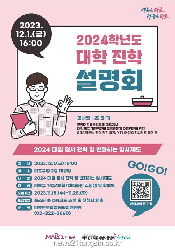 대학 진학설명회는 오는 12월 1일 오후 4시, 마포구청 대강당에서 개최한다.