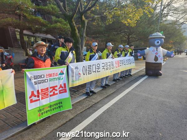 [뉴스21통신/장병기 기자] 광주광역시소방안전본부는 지난 19일 무등산국립공원 일원에서 산불과 각종 안전사고 예방 등을 위해 ‘산악안전의 날’ 캠페인을 실시했다.