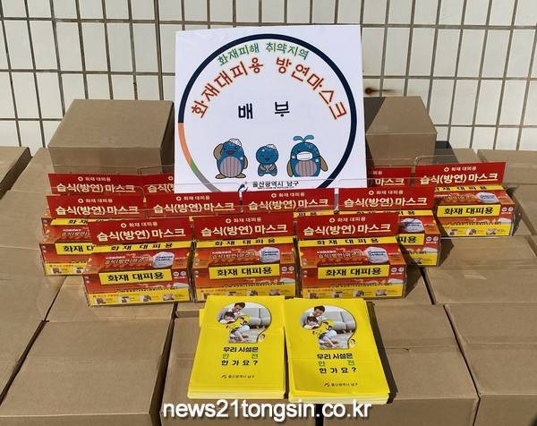 (뉴스21통신/최원영기자)=울산 남구(구청장 서동욱)는 화재로부터 구민의 생명 보호와 안전을 위한 환경 조성을 위해 사회복지시설 및 다중 공공시설 450개소에 화재대비용 방연마스크 9,000매를 배부했다고 20일 밝혔다.