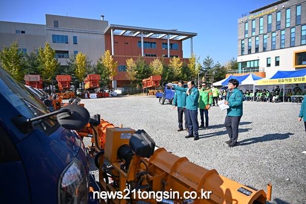 (뉴스21통신/권혁진기자) = 울산 북구는 20일 구청 제4주차장에서 겨울철 폭설에 대비해 제설작업 모의훈련을 실시했다.