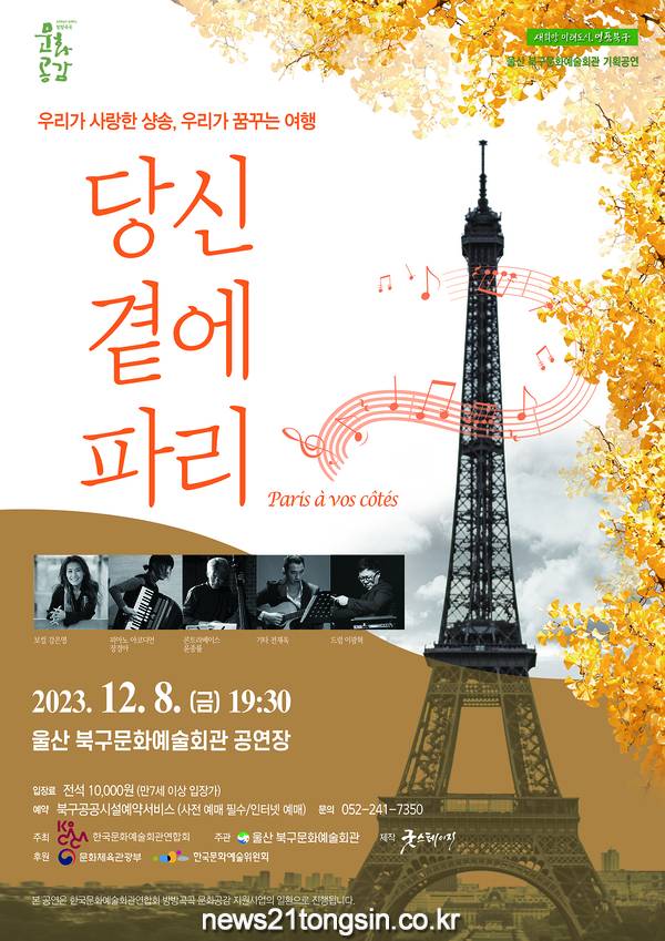 울산 북구문화예술회관은 12월 8일 오후 7시 30분 공연장에서 '당신 곁에 파리' 공연을 마련한다.