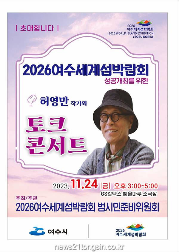여수시 홍보대사인 허영만 작가와 함께 섬전문가, 시민들이 ‘섬, 바다와 미래를 잇다’라는 2026여수세계섬박람회의 주제로 자유롭게 대화하는 이야기 마당으로 펼쳐진다.