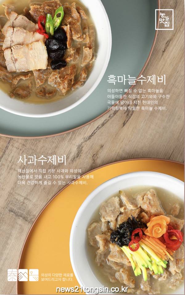 의성군은 농가맛집 ‘태산들’에서 우리밀 사과수제비·흑마늘수제비를 새롭게 선보였다고 밝혔다.