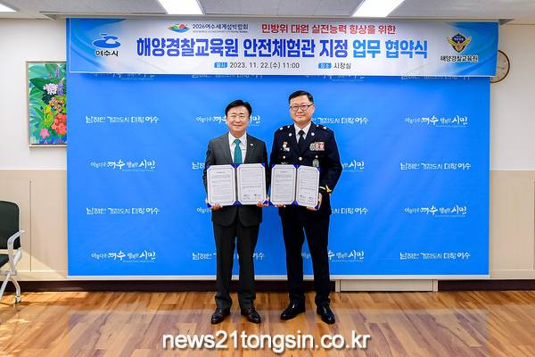 시에 따르면 이날 시장실에서 해양경찰교육원과 민방위 대원 실전능력 향상과 시민들의 생명을 보호하기 위해 업무 협약을 체결했다.