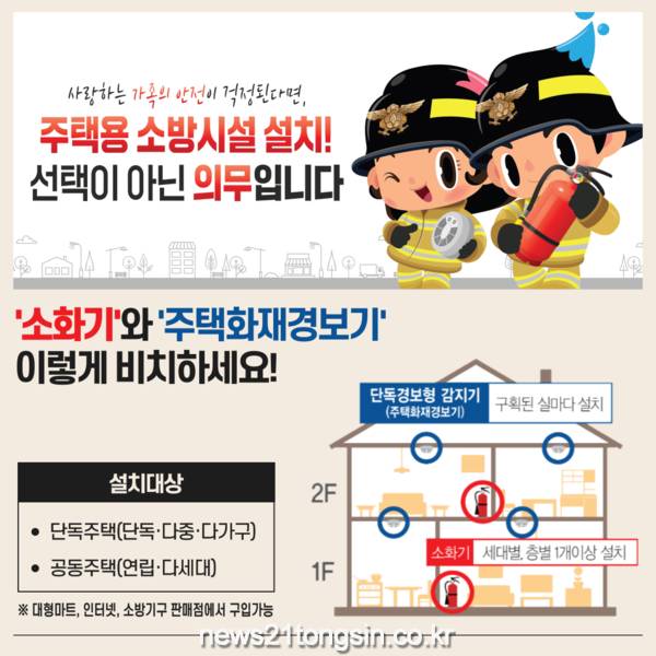임종만 재난예방과장은 “주택용 소방시설을 설치해 큰 화재를 예방한 사례는 전국적으로 많다”며 “주택용 소방시설 설치를 통해 우리 가족의 안전을 지키길 바란다”고 말했다.