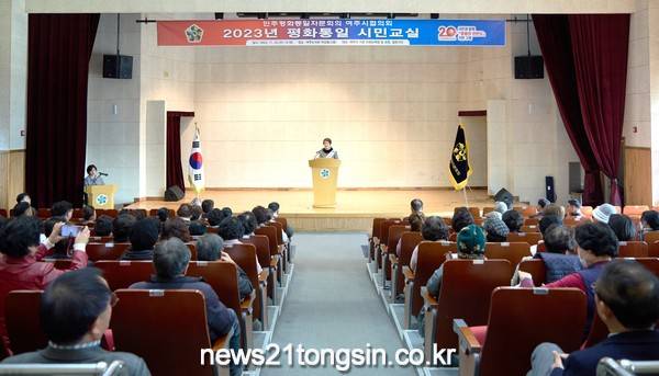 지난 22일 오후 2시 여주도서관 여강홀에서는 민주평화통일자문회의 여주시협의회(회장 김영자, 이하 민주평통 여주시협의회)가 주최하는 <2023 평화통일 시민교실>이 열렸다.