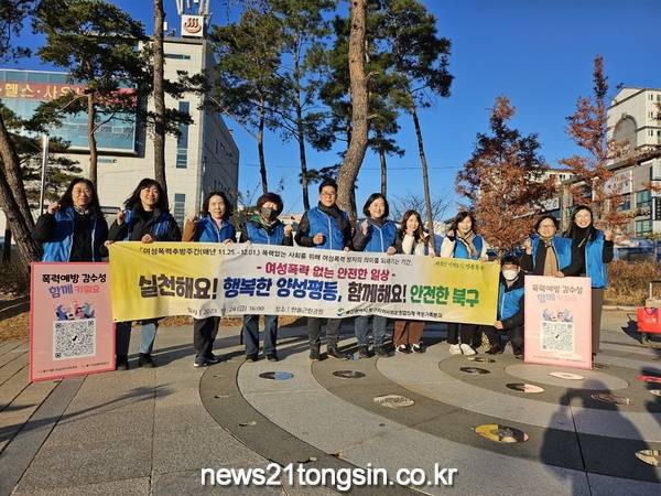 협의체 관계자는 "여성에 대한 폭력 뿐만 아니라 어떤 형태의 폭력도 지역사회에서 사라지기를 바란다"며 "안전한 북구만들기에 협의체가 앞장서겠다"고 말했다.