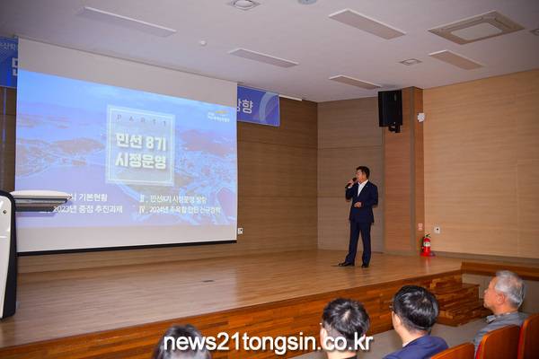 특강에서 정 시장은 민선8기 시정 운영방향과 시민맞춤형 혁신정책, 시민체감 적극행정 등 시 올해 중점추진 과제와 청년임대주택 지원, 여수형 워케이션 등 내년 신규시책에 대해 설명했다.