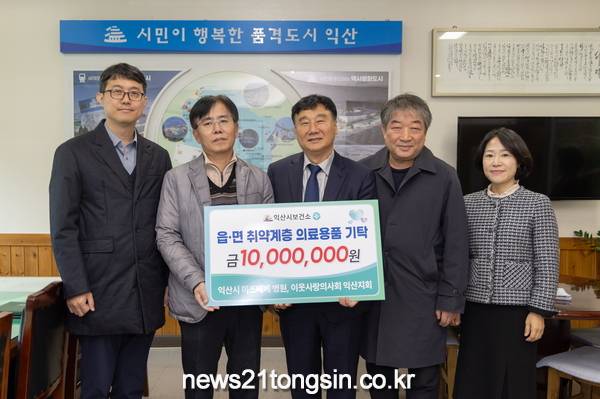 익산시 미즈베베병원과 이웃사랑의사회 익산지회가 22일 익산시청을 방문해 1,000만 원 상당의 의료용품 500점을 전달했다.