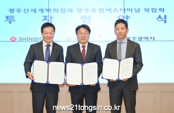[뉴스21통싱/장병기 기자] 광주광역시는 27일 ㈜신세계, 금호그룹과 함께 광주종합버스터미널 복합화를 통한 광주시 랜드마크 조성을 위해 적극 협력하기로 업무협약(MOU)을 체결했다.